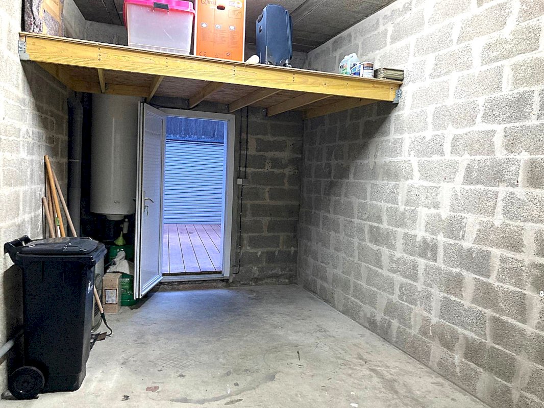 De la terrasse vous accédez au garage de 17.50 m² avec un galetas de 5.60 m².