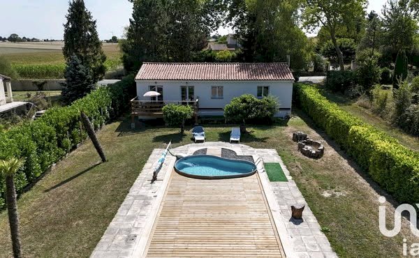 Dans petit village à Ozillac, maison en ossature bois de 2024 comportant une grande pièce à vivre et 2 chambres et une 3ème chambre est possible facilement, salle de douche, plus salle de bain, cuisine aménagée, avec terrasse donnant sur un jardin avec piscine water-air de 20 m3.