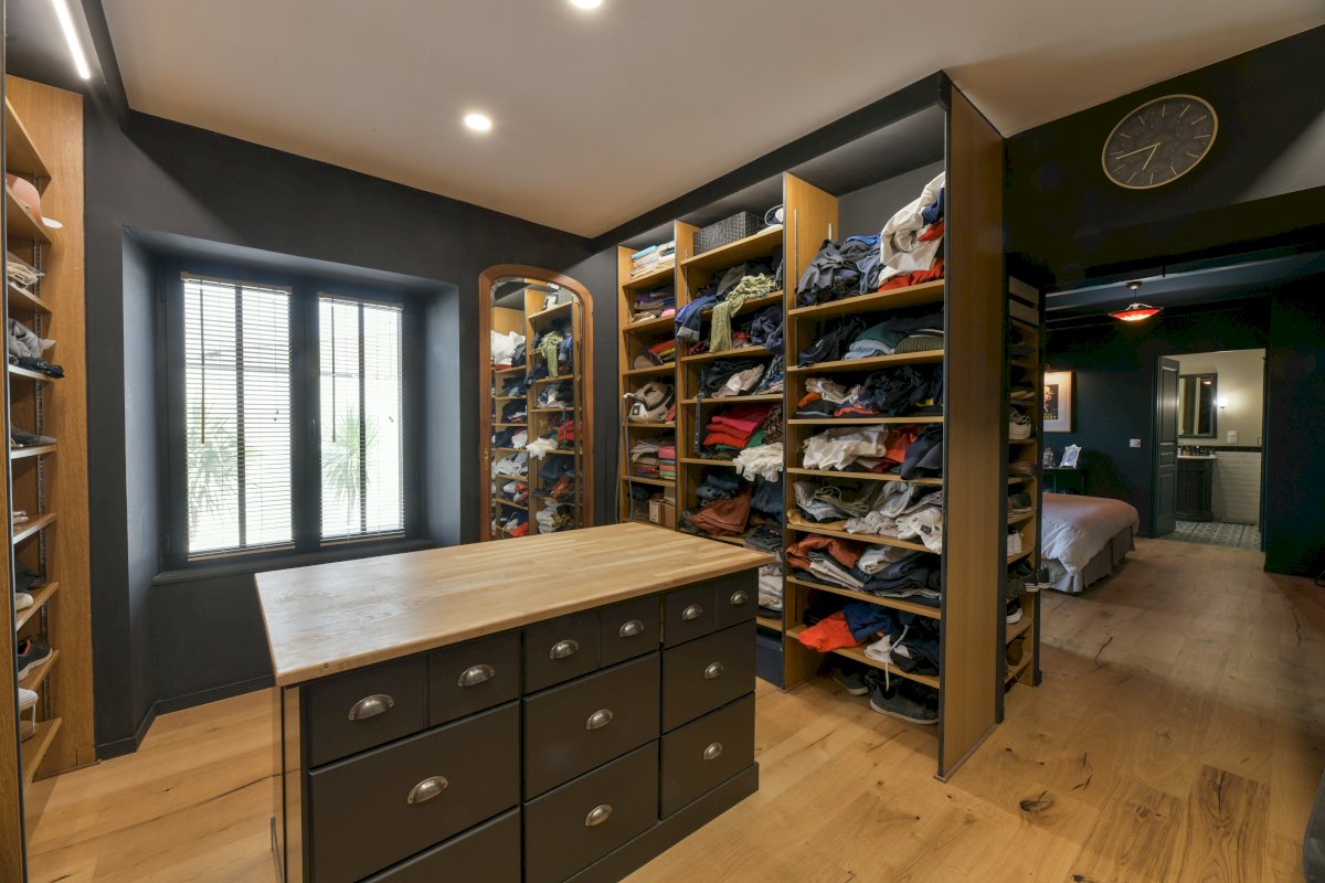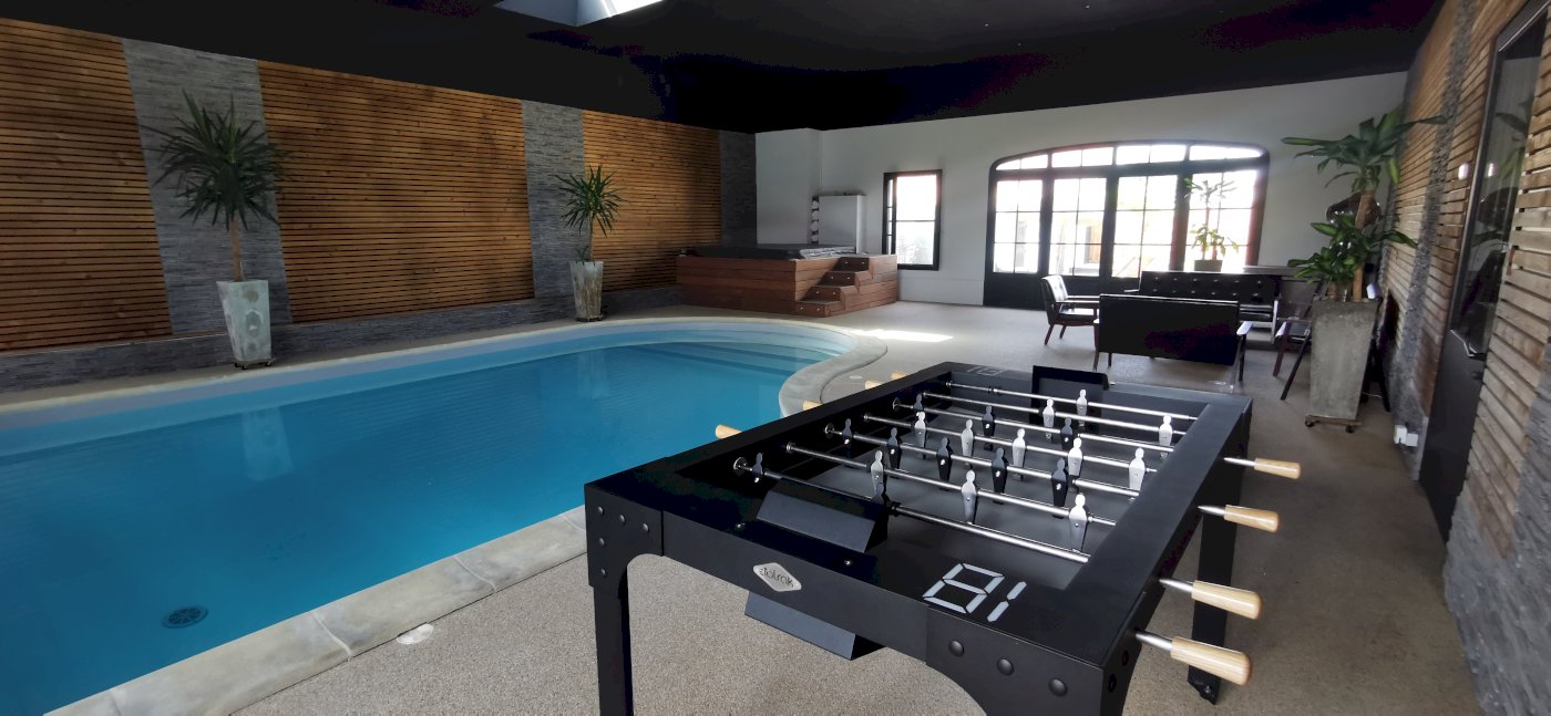 Cette maison exceptionnelle dans un village côtier à 5 minutes de La Rochelle, sur une parcelle de 814 m² offre un espace de vie de 372 m² comprenant une cuisine aménagée et équipée, un salon séjour, une pièce de réception avec piscine couverte et jacuzzi 6 places, 5 suites parentales avec dressing et salle d'eau, un bureau en mezzanine, une buanderie, un cellier, un préau pour les voitures, une dépendance d'environ 40 m², une cuisine d'été, une pergola végétalisée, et un terrain de pétanque.