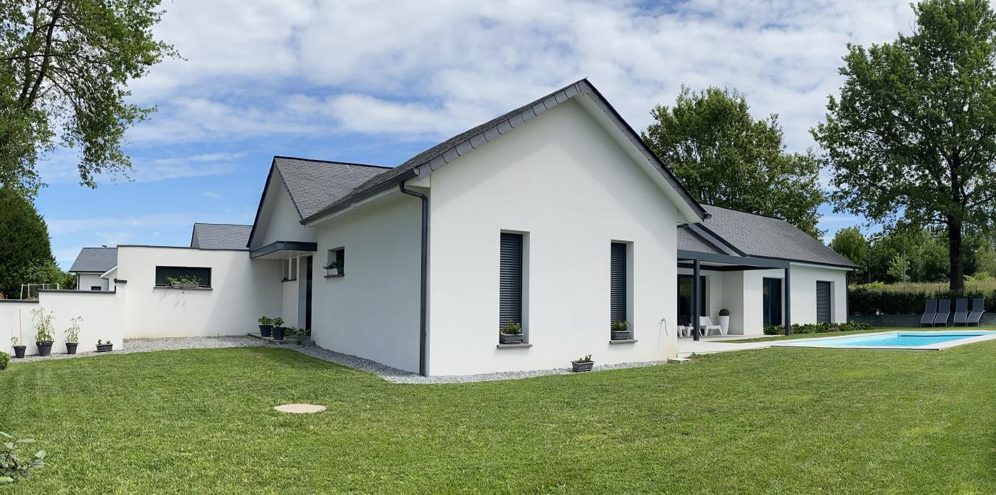 À Morlaàs, à 7 minutes de l’entrée de Pau et de Total, 10 minutes de l'autoroute,découvrez cette magnifique maison contemporaine de plain-pied de 157 m², construite en 2016, dans un cadre de vie privilégié.