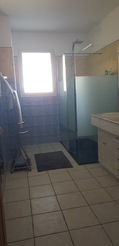 SDB avec douche et double vasque.