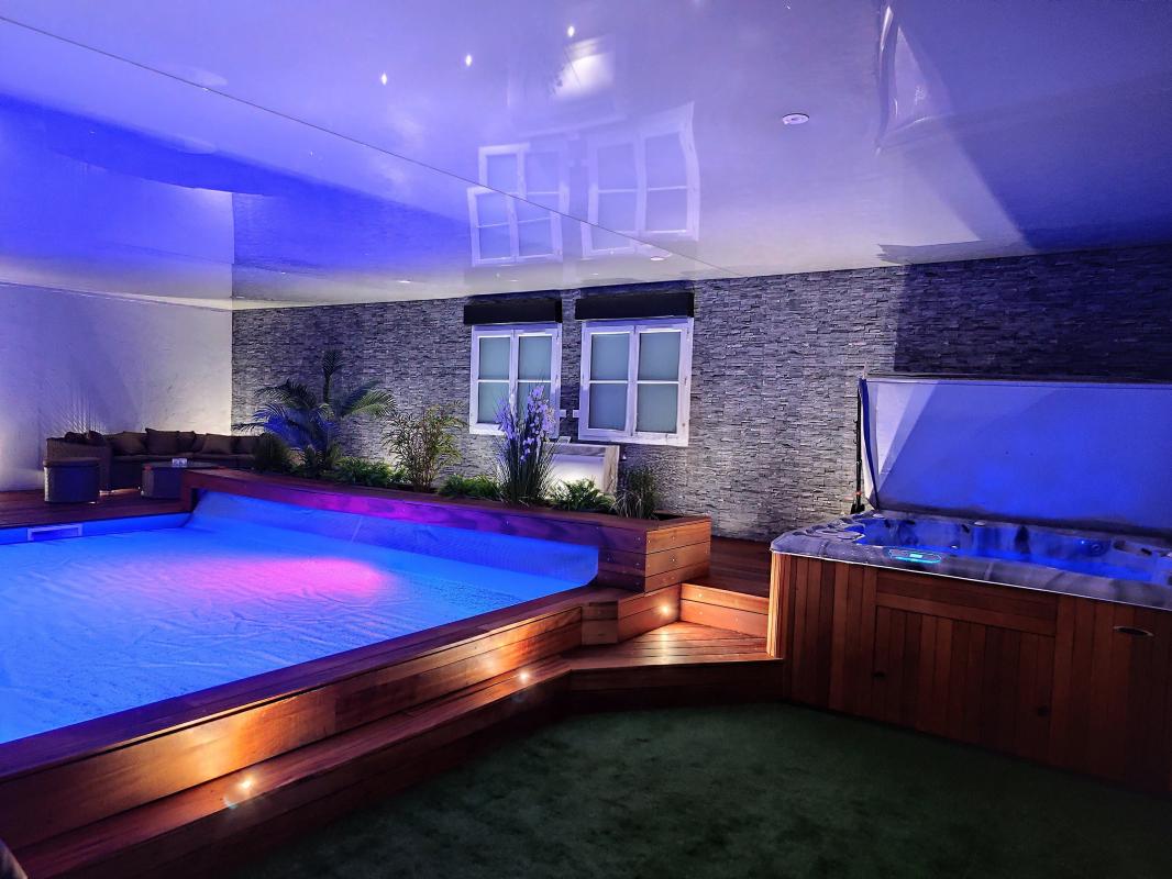 - espace aquatique de 113m² : piscine intérieure 30°C toute l’année, 6m x 5m, et spa 6 places, l’ensemble entouré d’une terrasse en bois exotique. Chauffage de la piscine par pompe à chaleur. Un vestiaire est dédié à cet espace avec sanitaire et douche