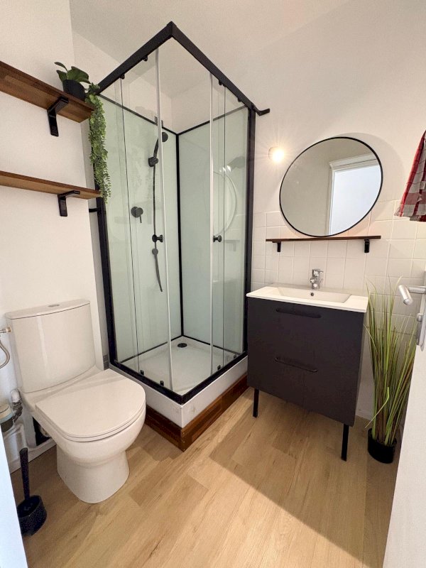 Salle d'eau, entièrement refaite à neuf Une cabine de douche, définition contemporaines.