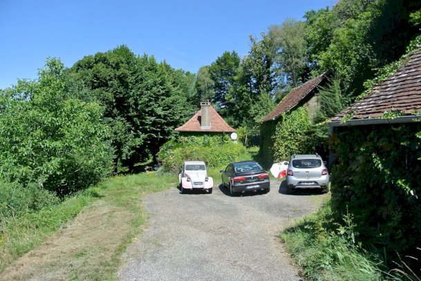 4. un terrain alentours avec parking pour plusieurs voitures et puits avec bassin.