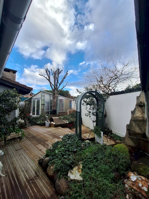 Sur ce terrain a été édifié une construction légére, type serre / jardin d'hiver qui abritait un SPA avec un décoration détente. Cette annexe peut être conservée ou être démontée pour agrandir la surface du jardin.