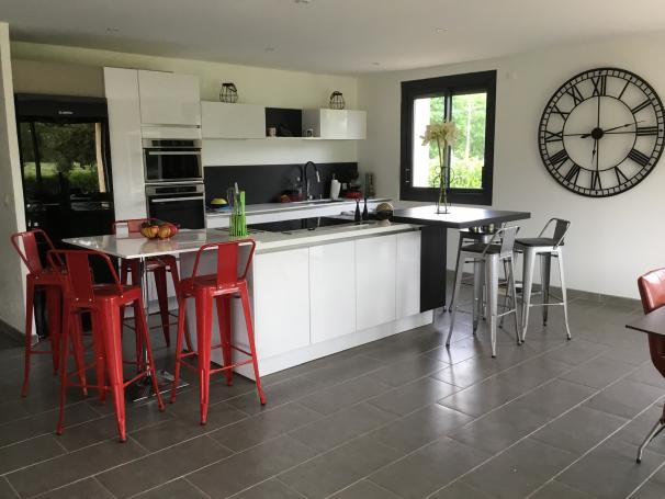 Pièce de vie de 70 m² avec cuisine équipée haut de gamme, baies vitrées à galendage, salle d'eau douche italienne, 3 chambres, une grande pièce de 20 m² pouvant faire une quatrième chambre ou un bureau, entrée de 30 m².