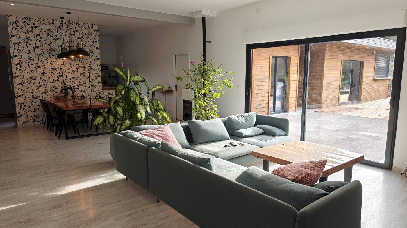 À l'extérieur, une terrasse de 180 m² avec sa pergola, sa piscine 4x12m et un bassin d'agrément.