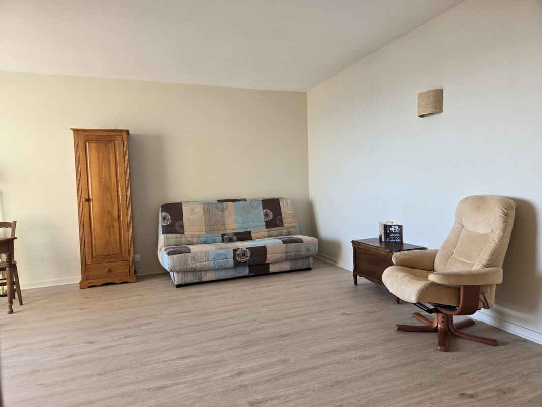 Récemment rénové, il se compose d'une entrée avec deux grands placards, d'une salle de bain et wc indépendant, d'une kitchenette donnant sur la pièce principale (25 m²) et d'un balcon (5 m²).