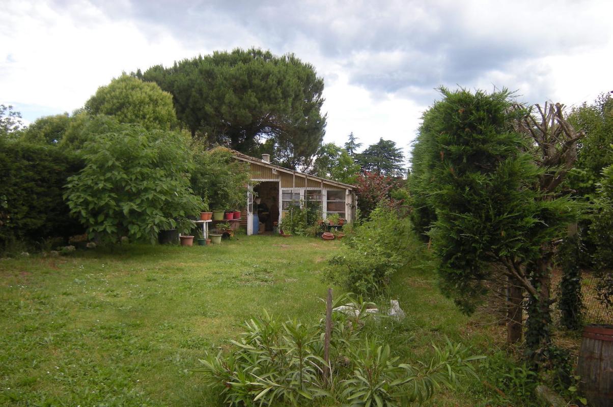 Jardin arboré et entretenu, serre, verger avec arbres fruitiers alimenté par un puits motorisé.