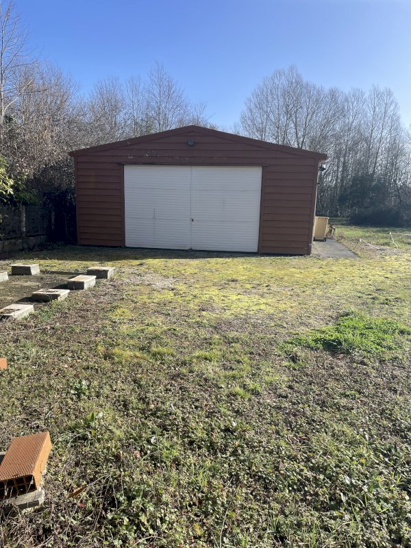 HANGAR quasiment neuf indépendant de 84 m², et 8,10m en façade x 10.30m de profondeur environ, une hauteur libre 3,90 m de implanté à 25 mètres environ de la façade arrière de la maison, il est construit en charpente et ossature métallique, couverture en bac acier et bardage extérieur décoratif le tout isolé, sol en beton, éclairage néon intérieur et projecteur extérieure, prise de courant, tableau électrique de protection, 2 grand portail d'acces.