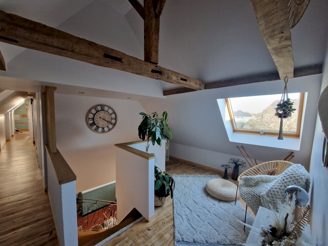 - A l'étage, une rénovation complète (pompes à chaleur, isolation, VMC, double vitrage) donne accès à 3 chambres spacieuses, dont 2 équipées de salle d'eau et une d'une salle de bain. WC commun, rangement dans le couloir et sur le palier un espace dédier à la détente.
