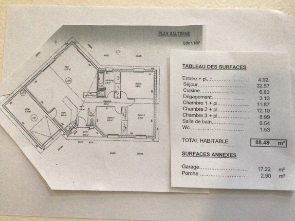 Maison de plain pied, 88,48 m2 de 2004 dans petit lotissement avec vue dégagée sur la campagne.