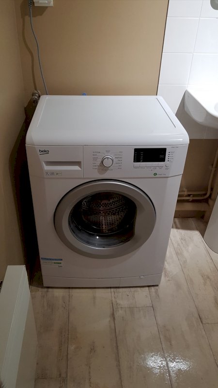 - Salle de bains avec baignoire – Machine à laver neuve – Toilettes