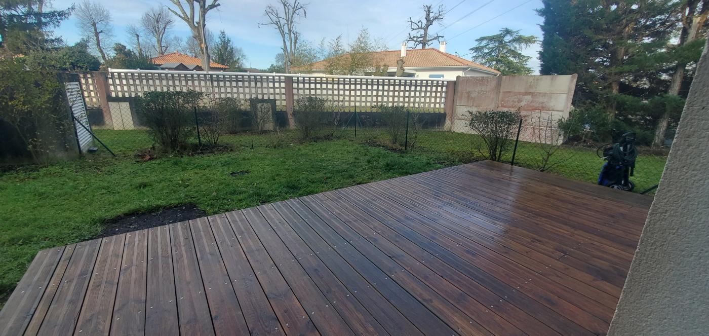 Les chambres et la pièce de vie donnent sur le jardin avec terrasse bois au calme et sans vis-à-vis de 60m². Volets roulants électriques.
