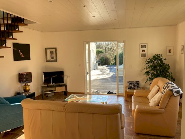 Jolie maison de plain-pied offrant de beaux volumes et de belles prestations, composée de :. Entrée avec placards, cuisine aménagée et équipée (refaite 2020) semi-ouverte sur salle-à-manger pour environ 46m² avec cheminée, salon de 25m² avec baie à galandage donnant sur terrasse et piscine, dégagement, 4 belles chambres dont 2 avec placards, salle d'eau et wc.