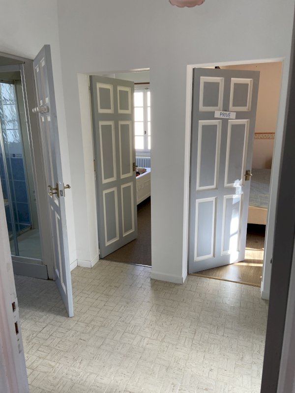 Le 1er étage est constitué d'une grande mezzanine de 28 m², d'une première chambre de 17 m² avec sa salle d'eau et son toilette, et d'une seconde chambre de 12 m² à l'autre extrémité.