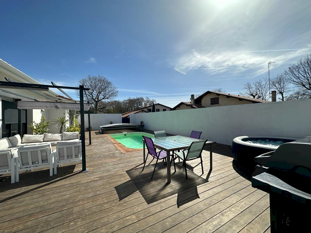 La villa se situe dans un quartier calme et proche de toutes commodités (50 m de la piste cyclable, 400 m du lac de Soustons et 1 km du centre)0
