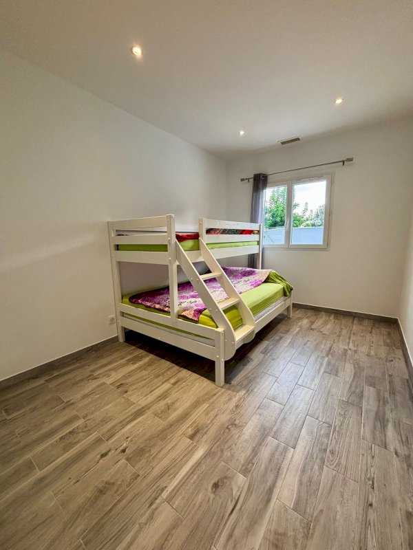 La maison se compose d’une entrée, une pièce de vie spacieuse de 52m² comprenant le salon principal donnant sur une cuisine américaine entièrement équipée avec son îlot central, 4 chambres dont 3 avec placards encastrables, la chambre parentale dispose de sa propre salle d’eau…