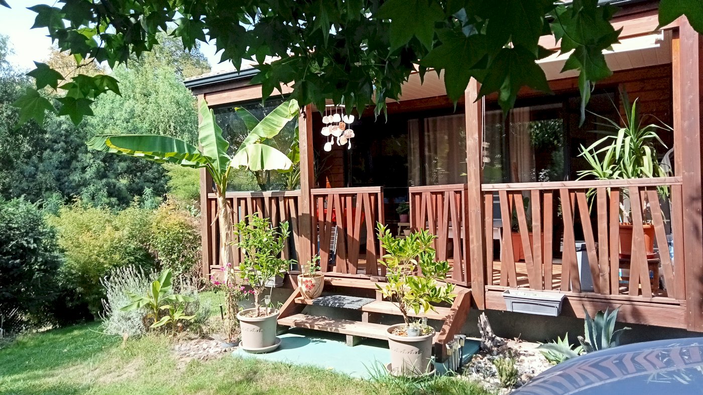 Vends chalet en bois construit sur fondations agglos et béton sur une parcelle de 300 m² dans un camping calme et verdoyant comprenant 20 chalets.