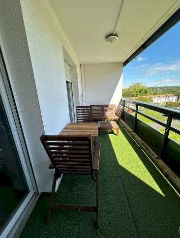 Appartement T3 Ciboure en vente se composant de deux chambres, une salle de bain refaite à neuf, 2 toilettes, une terrasse, un balcon, une cave, un cellier, un séjour lumineux, et des places de parking.