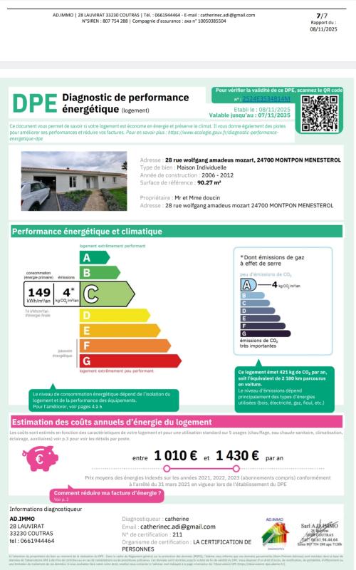 Aucun frais à prévoir, la maison, comme le terrain, est parfaitement entretenue et a été modernisée et agrémentée. Le DPE est réalisé, tout comme sera réalisé pour la vente légalement le ramonage de l’insert, le contrôle/la vidange de la fosse toutes eaux.