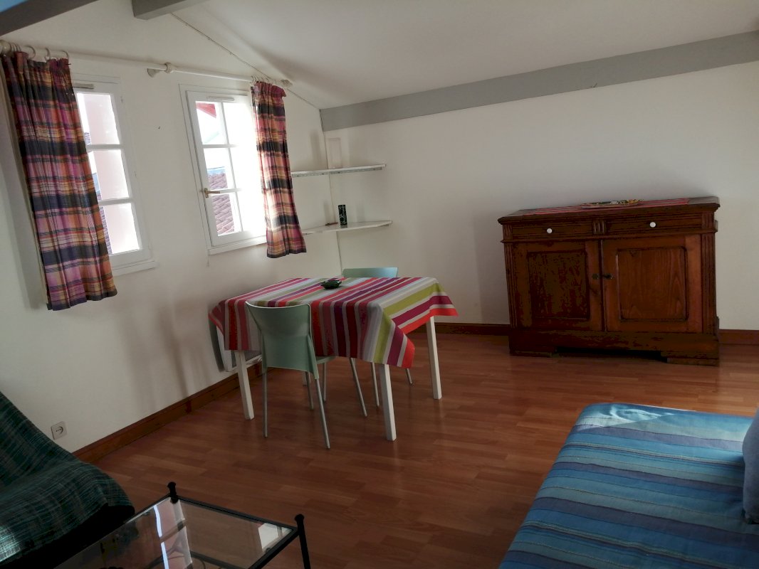 En plein centre de St Jean de Luz (mais au calme), joli petit appartement au dernier étage, côté Sud, lumineux, situé près des Halles, des commerces et de la plage (5 mn à pied), comprenant : une entrée avec placard, une pièce principale avec alcôve contigüe (coin nuit), un espace cuisine séparé, salle de bains, WC séparé.
