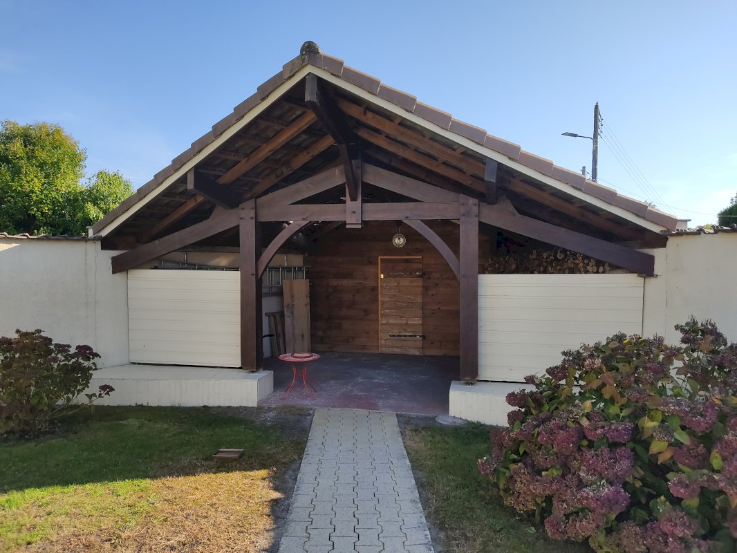 Abri-voiture et parking pouvant contenir au moins 5 véhicules.